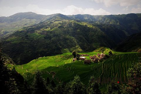 還有那美輪美奐的加榜梯田,有著“農耕文化博物館”之譽,堪稱“人間絕境”。加榜梯田位于從江縣西部的月亮山腹地,是中國梯田之一。獨具苗鄉特色的吊腳樓均勻散落于近萬畝的梯田之上,猶如銀河中閃爍的繁星。加之梯田緊靠加車河,雨水充沛,每天清晨,一層層云霧便從河邊緩緩升起,慢慢的將梯田連同吊腳樓一起籠罩,如此盛景,保證會讓你在陶醉之余生起一種身處幻境的錯覺。在以各種方式評選的中國 美梯田中,無論是10大、 9大,還是5大、4大,加榜梯田總會占據其中一席。